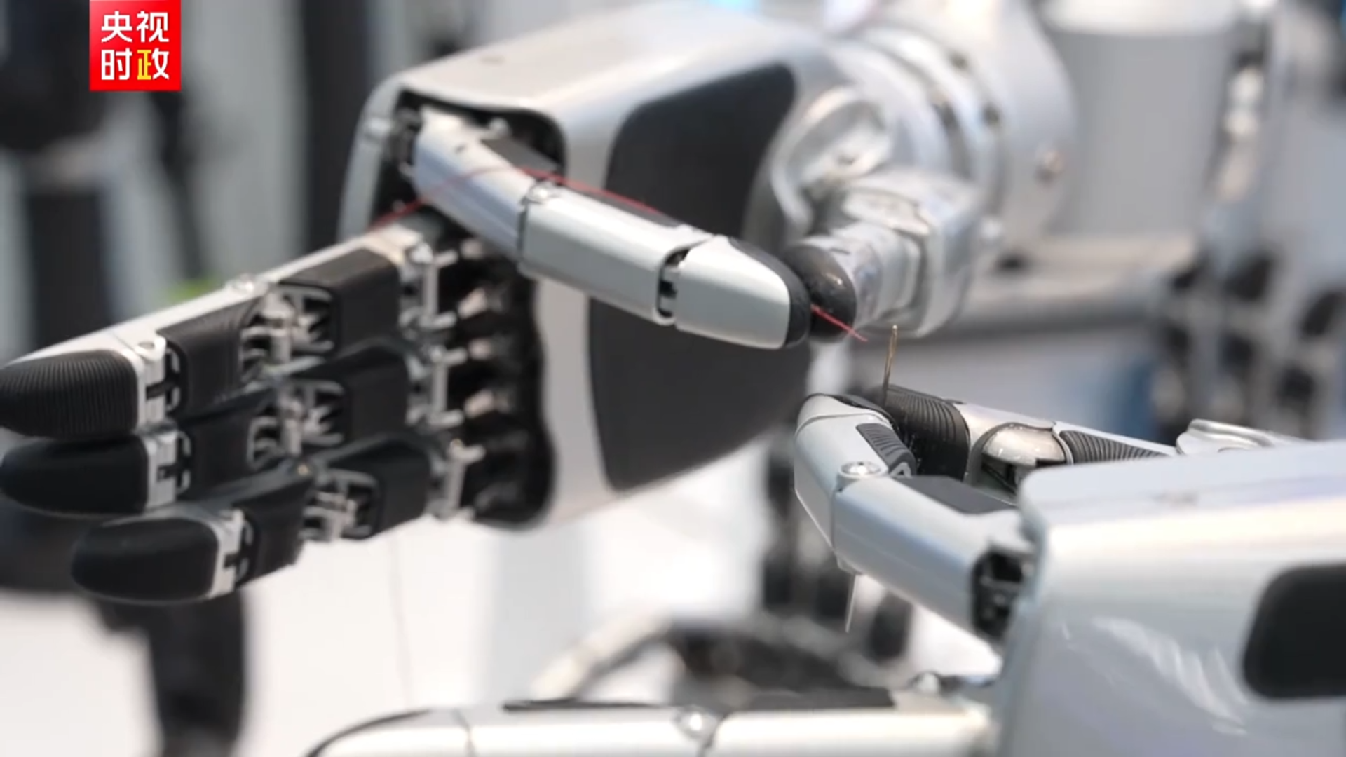 在国度信创园的展厅中,北京具身智能中枢零部件企业灵心巧手的一对灵敏手,正捏起一枚拈花针,将细若发丝的线瞄准针眼,轻轻一穿,线头稳稳穿过。