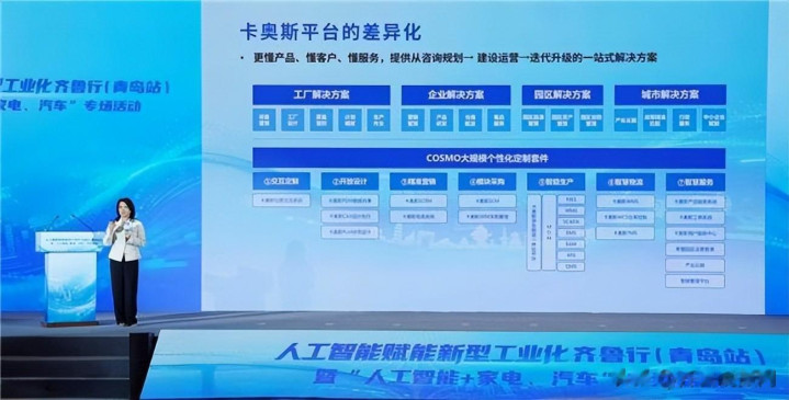行径现场,行动国度级双跨平台,卡奥斯COSMOPlat分享了平台以东谈主工智能+工业互联网助力制造业数智化转型的探索与推行效果。分享中提到,平台打造国内首个基于工业互联网平台的垂域大模子—天智工业大模子,并通过“一排业、一模子”的形式,落地石化、能碳、家电等9大行业的40多个场景,为产业转型提供了“工业大脑”。