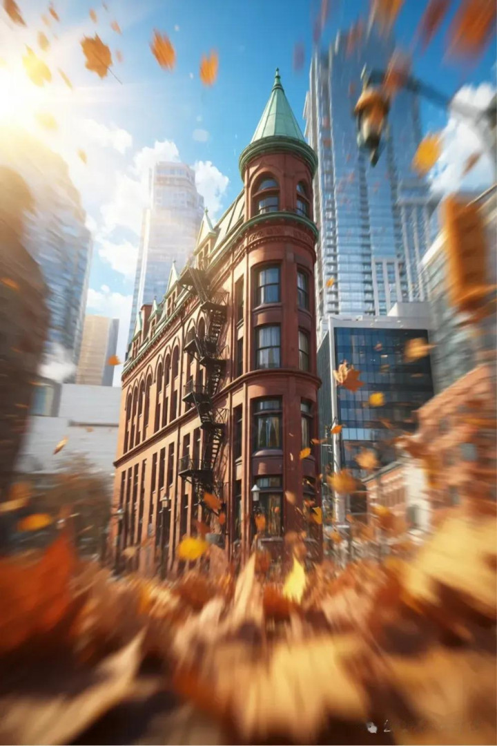 将这张图变成游戏CG作风,极具艺术感,震憾东说念主心,超高清。落叶飞溅,远景落叶虚化,动态璷黫,配景动态虚化,阳光灿烂,蓝天白云,光影交错,仰拍特写镜头,隆起速率感和视觉冲击力,强透视。