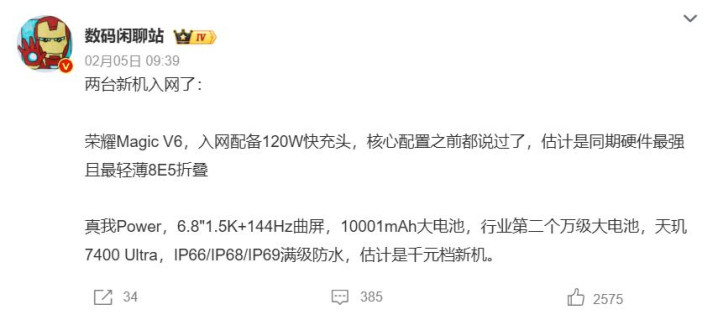 上半年荣耀会发布折叠屏手机,相通也有大容量电板,容量会在7发轫,并复旧120w有线快充头,搭载骁龙8Elite Gen 5贬责器,有可能是同时硬件最强且最大意的骁龙8E5大折叠屏手机,本期就来盘货这些新机,一又友们可以了解下。