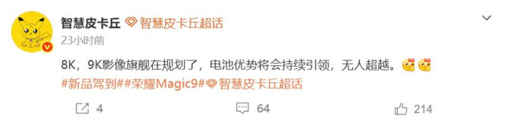 荣耀magic9系列在探求8k、9k大电板,据了解下代产物中会有6.8x英寸的大屏手机,展望是pro版块,有了更大的尺寸就能塞得下更大电板。