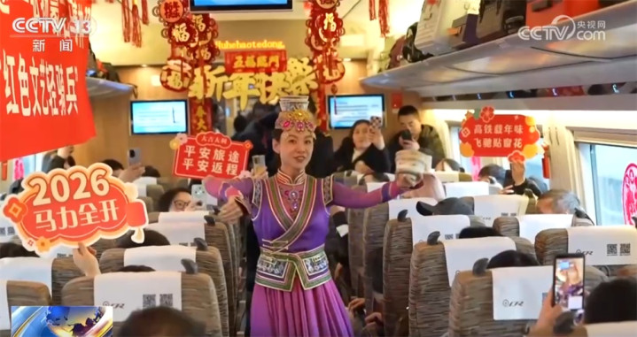 在G3754次列车上,福字、对联和窗花将车厢装点得年味王人备。列车刚从杭州西站始发不久,文艺献技便拉开帷幕,跳舞、民族乐器等扮演接连上演。文艺责任者带来的马头琴《万马奔腾》,为游客奉上新年道贺;铁路责任主说念主员带来的琵琶独奏《敕勒歌》,让归家的游子提前感受和缓。