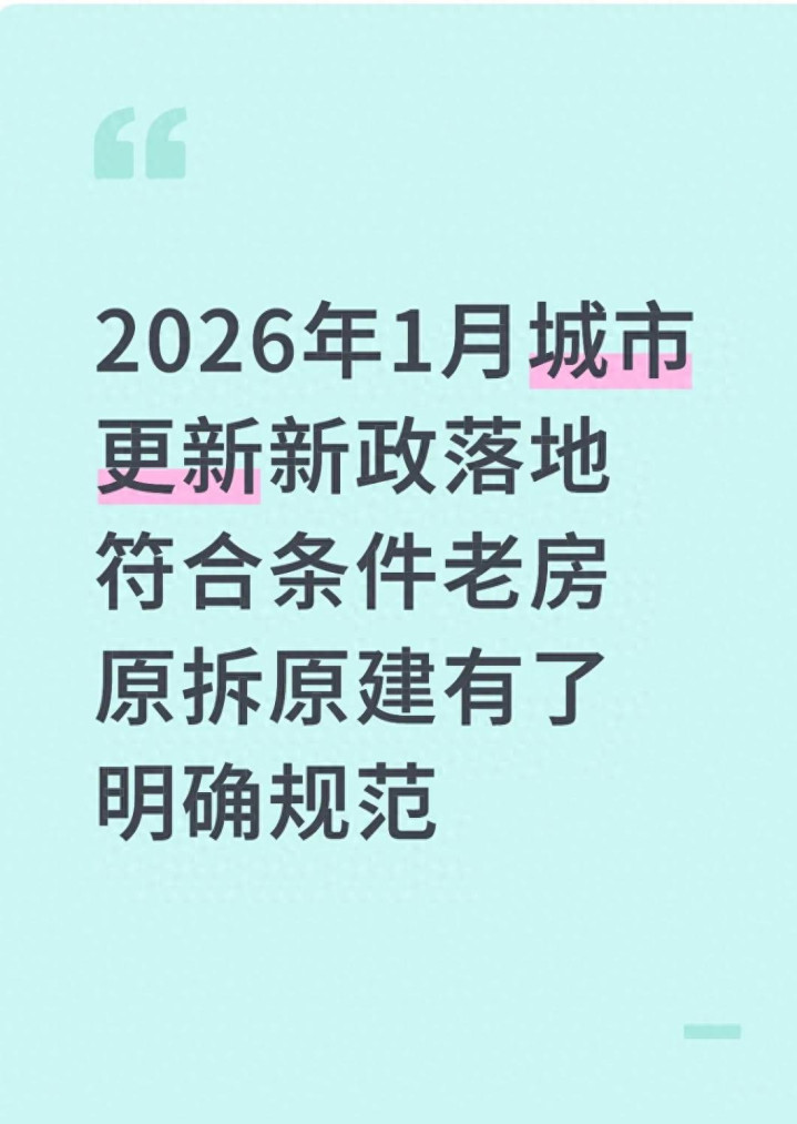 2026年1月20日,住房和城乡斥地部与当然资源部筹办发布《对于进一步接济城市更新行为些许次第的奉告》,这份文献针对城市更新职责给出多项具体接济次第,其中稳健推动危急住房窜改、法式原拆原建的内容,径直干系到重大老旧小区居民的居住需求,也让城市更新职责干预更法式的启动阶段。