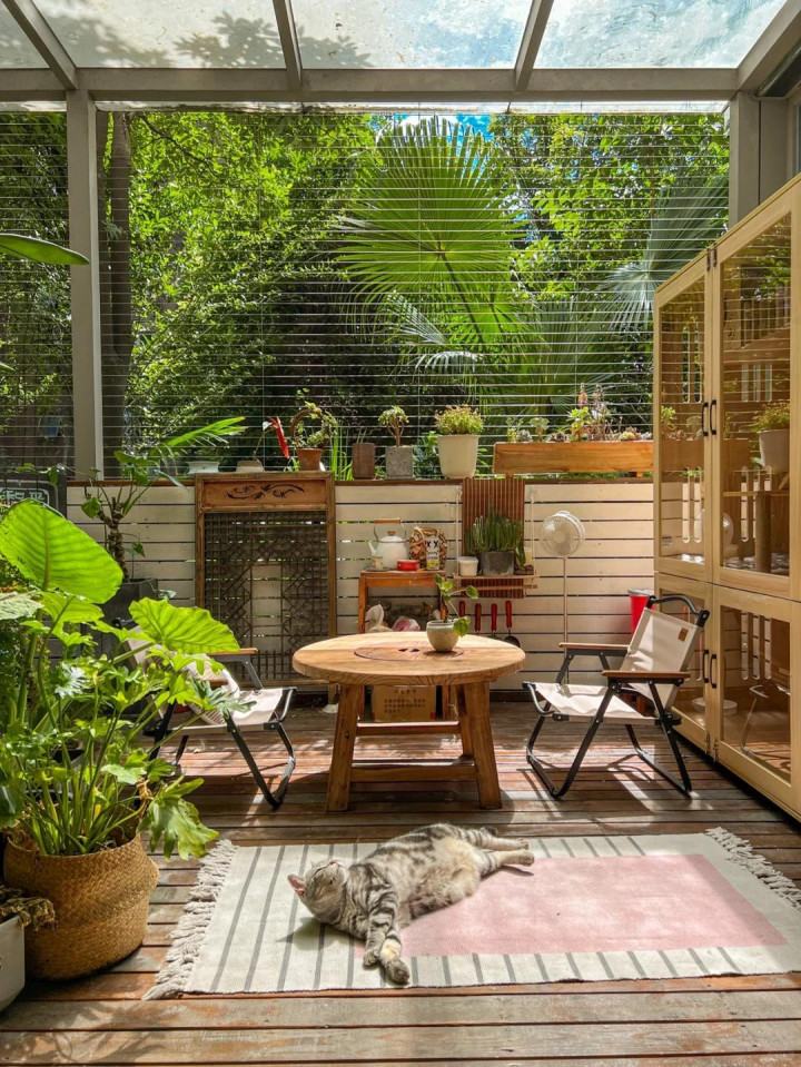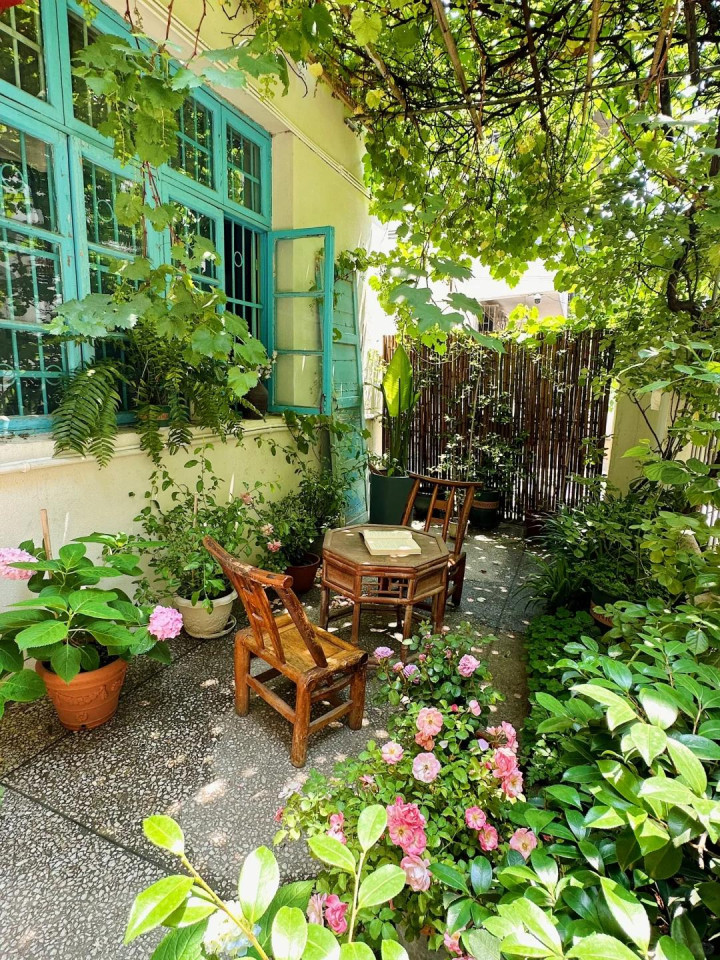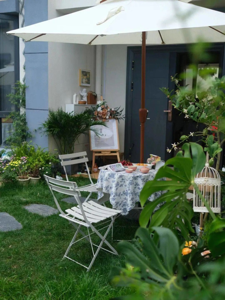 放把旧藤椅,挂个晾衣绳,边际堆吐花盆和铁锹。乱,但安稳。