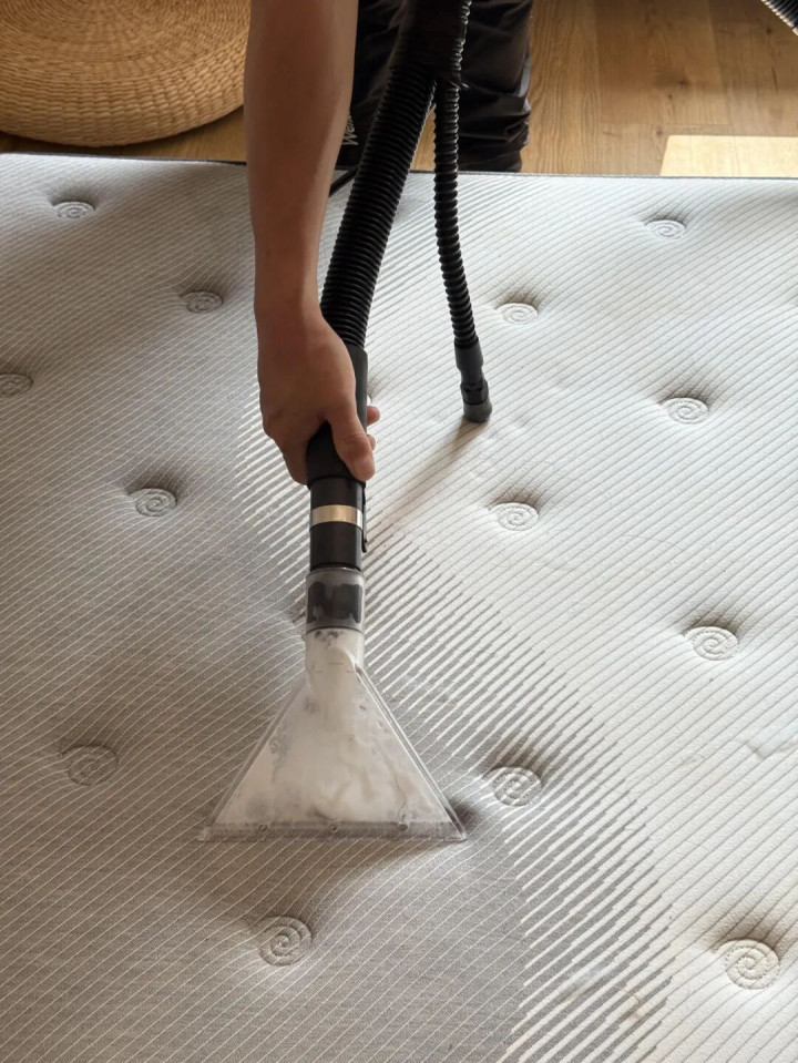 床垫不成水洗,就用吸尘器,把名义的灰尘、皮屑吸干净,然后喷点除螨喷雾,再拿到太阳下面晒一晒,杀杀菌、除除味。