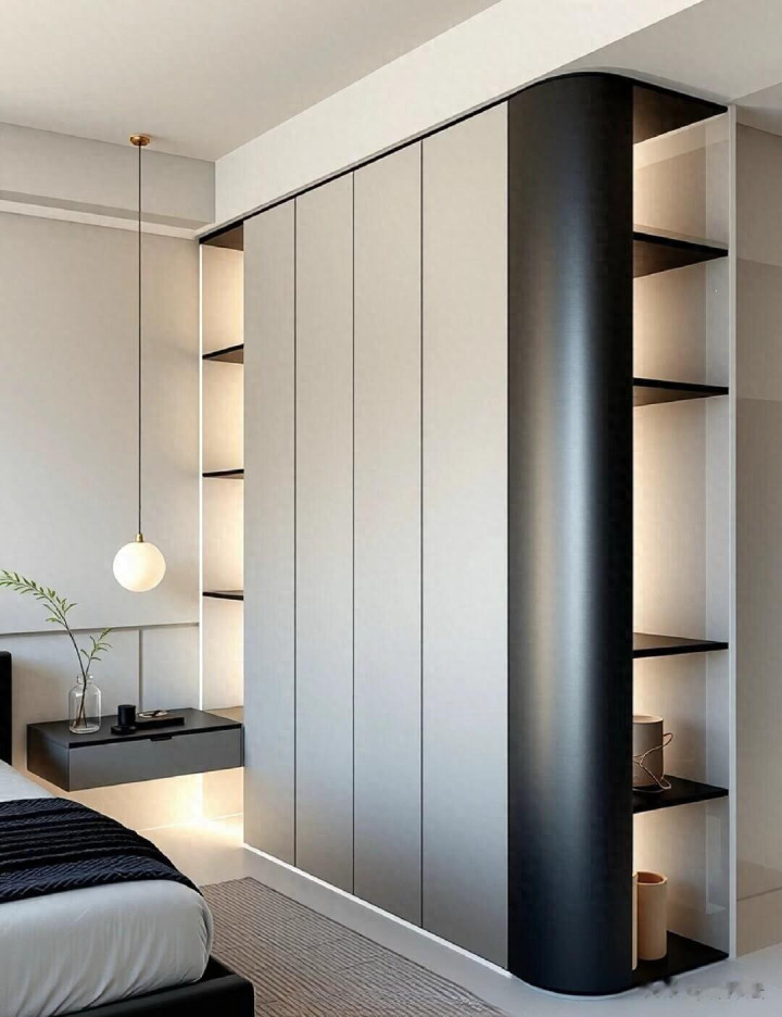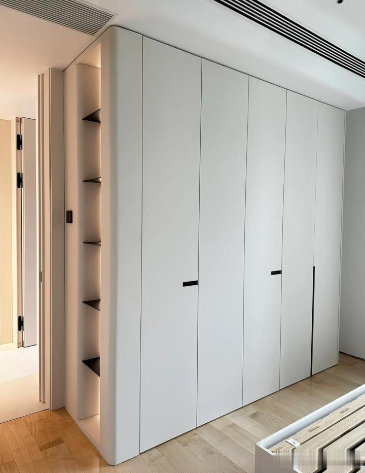 这个薄边柜上部区域,可作念挂衣区使用,入室脱衣唾手挂起,几乎太概况了,何况还有迂回柜,这么的缠绵实用性能强,何况还好意思不雅,更垂危的是跟使用见光板的造价不相迂回。