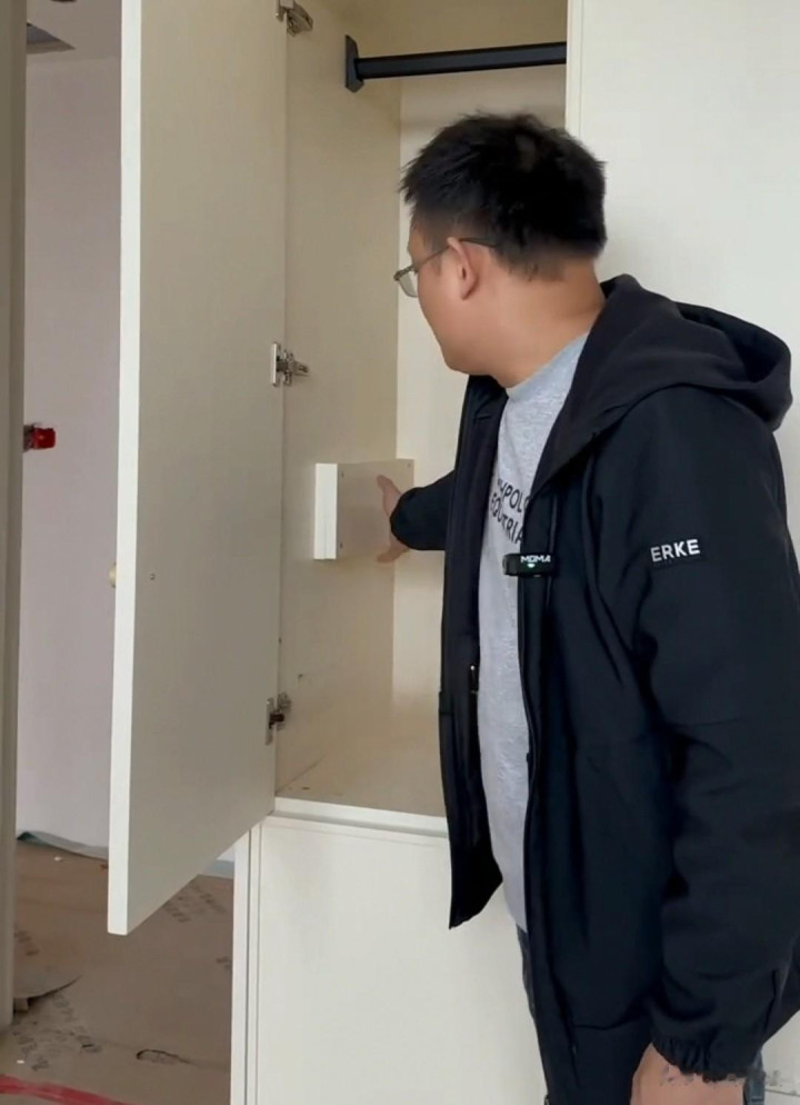 这里既然缠绵薄边柜,那么开关位置虽然就不是问题了,独一把薄边柜靠墙的侧板上钻孔,再将开关剖析引出即可,你记取了吗?