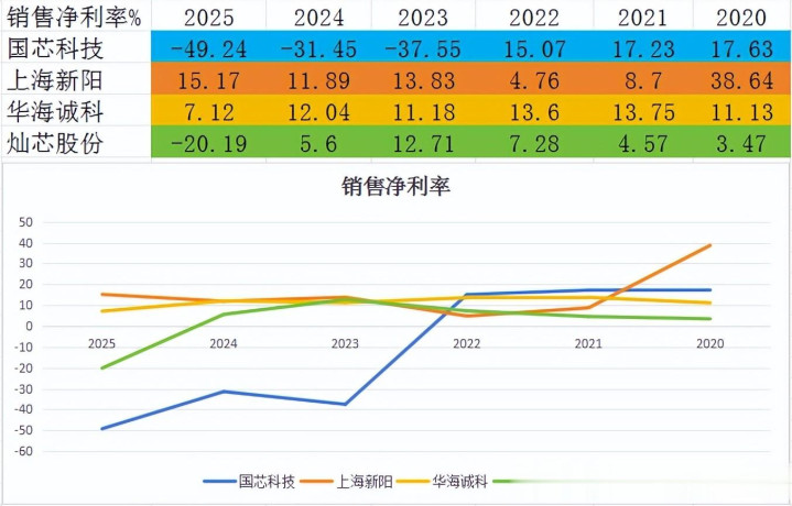 盈利才智排行径:上海新阳>华海诚科>灿芯科技>国芯科技。
