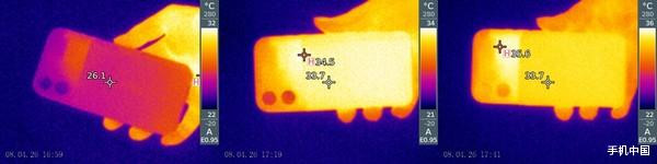 在执行的使用经过中,无线充电时后头是温温的,能嗅觉到有热量但完全在不错接受的范围内,不会以为烫手。至于具体的温度,笔者在测试充电速率时也进行了纪录,在开动充电时,温度为26.1℃,充电20分钟后,最高温度达到了34.5℃,达成充电时的最高温度也仅为35.6℃,甚而充电宝区域的温度比手机还低。
