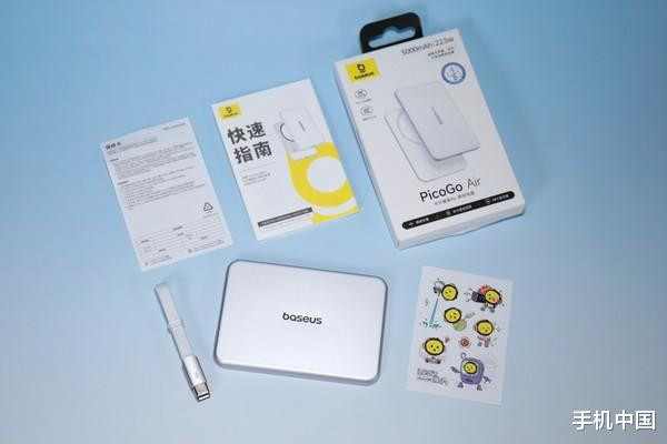 大开包装,里面配件未几:充电宝执行、一根C to C超薄编织充电线、快速指南、保修卡,以及一张“倍小狮”形象贴纸。