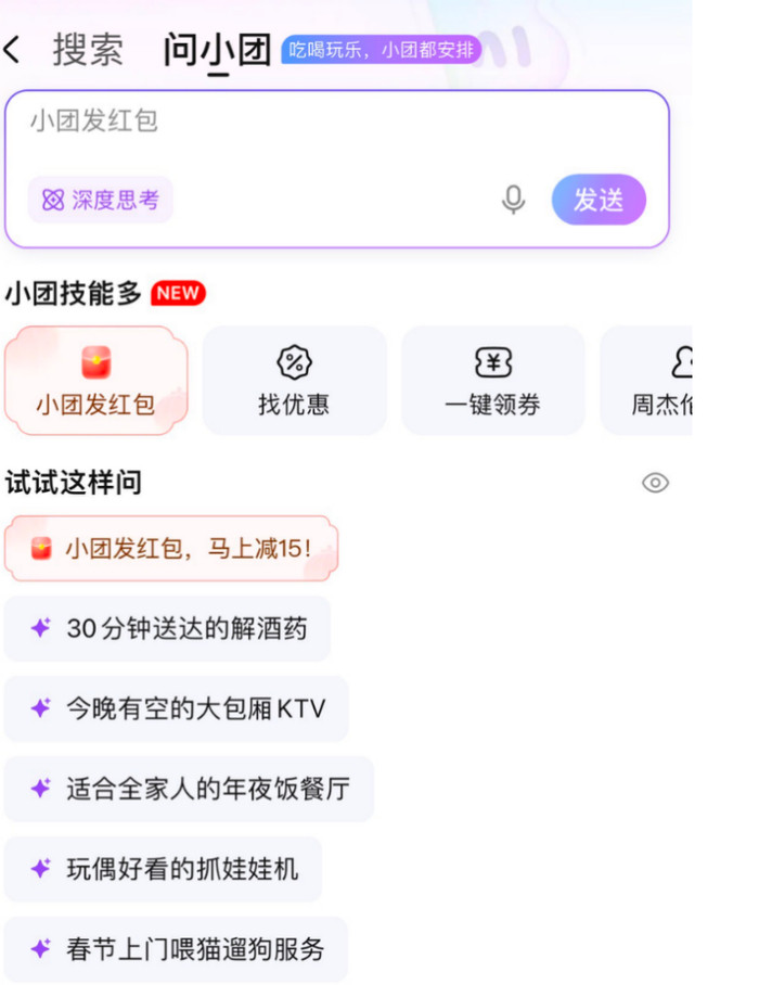 关系认真东谈主默示,本次升级主若是为了处分用户在春节期间面对的腹地活命痛点,匡助奢靡者高效找到相宜需要、真确可来去且价钱更优的就业,减少“踩坑”可能。假期商家营业时刻不厚实,各样优惠信息零乱,依托平台商户信息、真确点评、就业资源及即时践约才调,“问小团”大致作念到反应用户复杂、即时的需求。