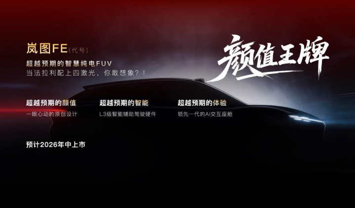 岚图泰山Ultra:四肢中国首款量产L3级SUV,搭载华为乾崑智驾ADS 4四激光雷达决议,将于2026年3月崇拜开启录用。