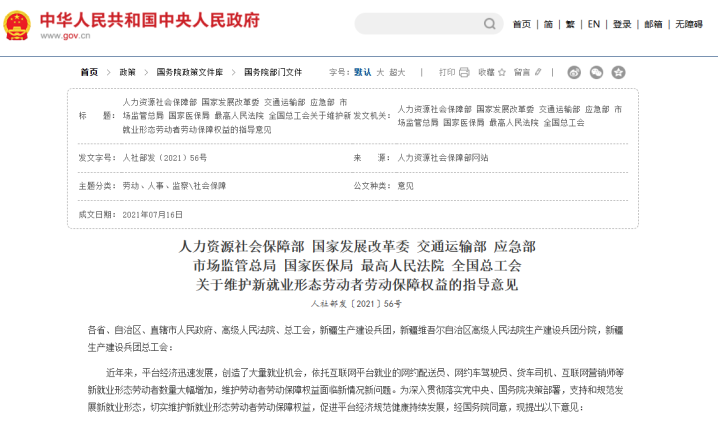 这次会议并非伶仃事件,而是一系列政策行动的延续和升级。早在2021年,东说念主社部等八部门就鸠合发布了被称为“56号文”的《对于鄙吝新作事形态作事家作事保障权益的率领想法》。