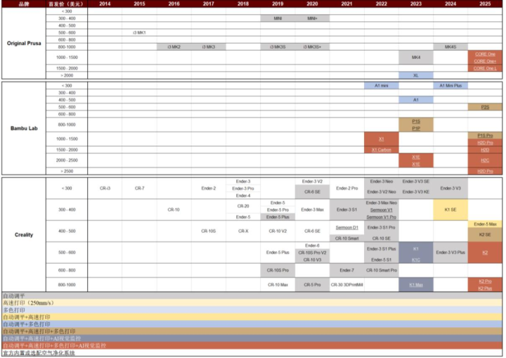 图表5:FDM铺张级3D打印机产物迭代图