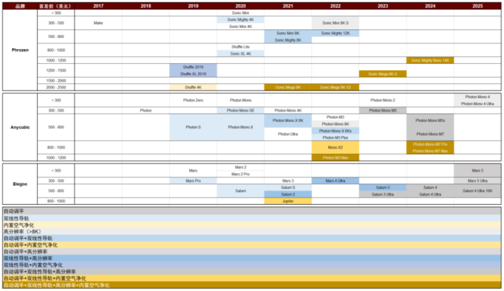 图表6:LCD铺张级3D打印机产物迭代图