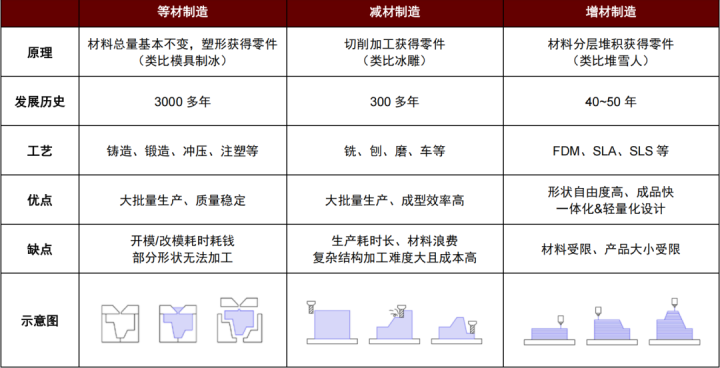 增材制造(也称3D打印)是基于3D模子,并通过材料分层堆积神志制造产物的分娩模式。常见使命经过包括3D建模、模子切片、增材制造、去除支捏、后期处理。3D打印已有40多年发展历史,其优点在于制品速率快、可齐全一体化和轻量化想象、产物风物解放度高,在小批量分娩场景本钱上风明显,污点在于材料及产物尺寸受限。