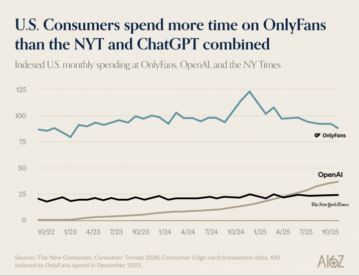 直播吧02月11日讯据外媒征引数据表露,好意思国浪掷者在现实订阅平台OnlyFans(充斥18+现实)上的支拨也曾超过OpenAI与《纽约时报》的总额。
