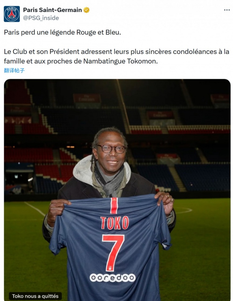 托科2月10日物化,享年73岁,巴黎圣日耳曼社媒写谈:“巴黎失去了一位红蓝军团的别传东谈主物。俱乐部过甚主席向托科的家东谈主和一又友致以最潜入的慰问,开云体育”