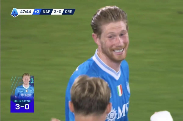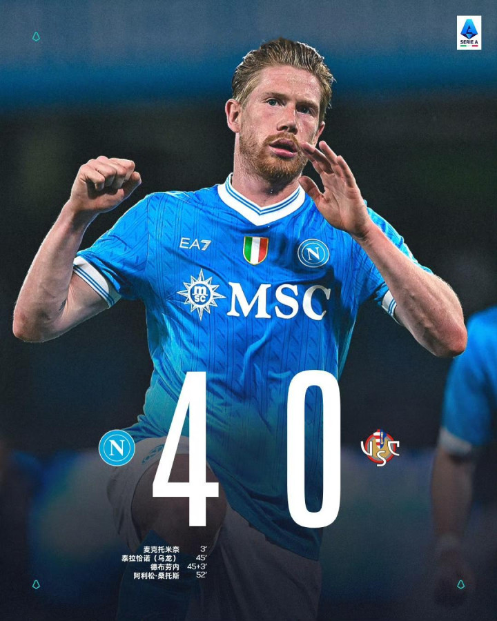 此役主场对阵克雷莫内塞,首发出战的德布劳内在上半场补时阶段打入一球,匡助那不勒斯得到3-0跳动。
