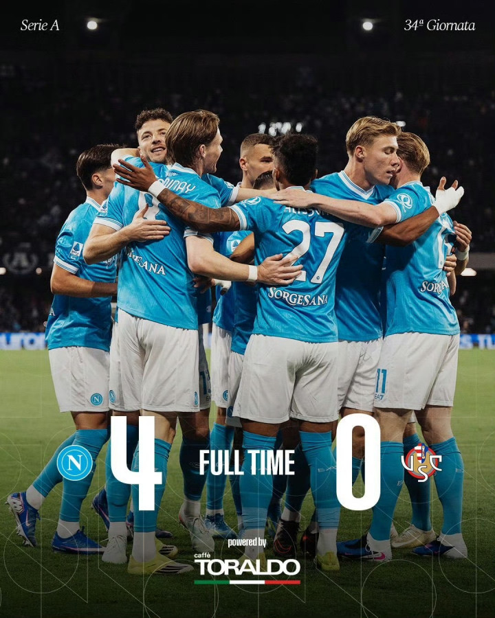 ②意甲第34轮:主场大捷-那不勒斯4-0克雷莫内塞,德布劳内传射,麦克托米奈闪击+失点