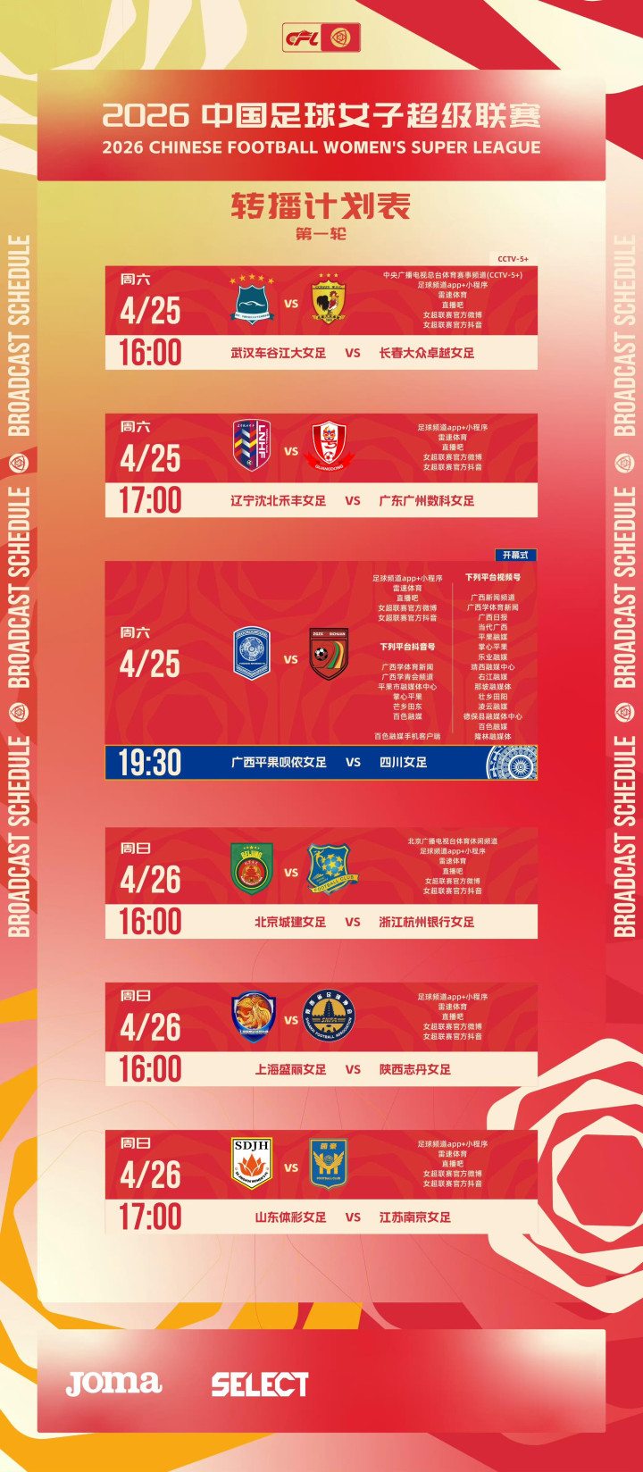 ③女超第1轮转对阵及播策画: