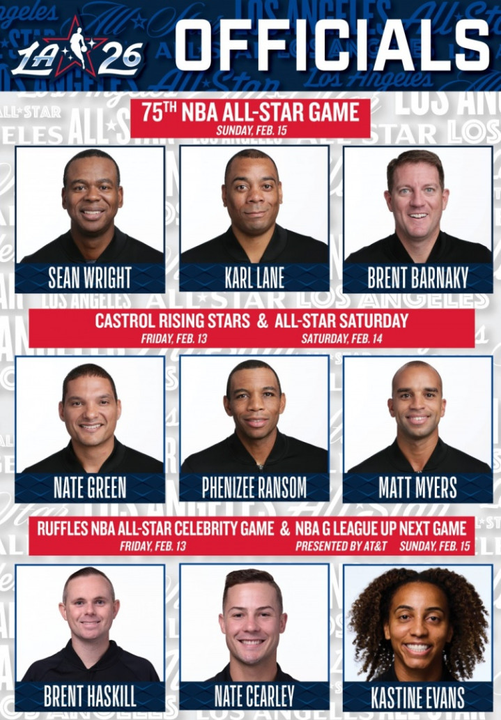 全明星少壮赛及三分&扣篮大赛裁判:NateGreen、PhenizeeRansom、MattMyers。