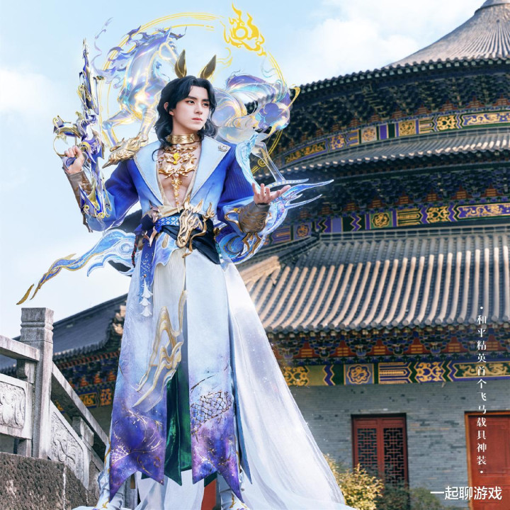 领先咱们来看由敖瑞鹏Cos的男变装新红装,被光子定名为“天马神君-驭风”,从衣着的感情以及版型上来看的话,与之前的瞻望收支不大,比如蓝色、金色等配色以及东方奇幻的古风设定。